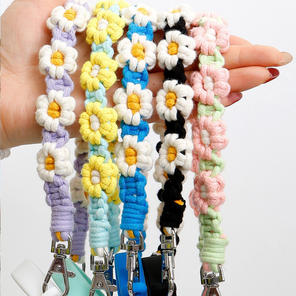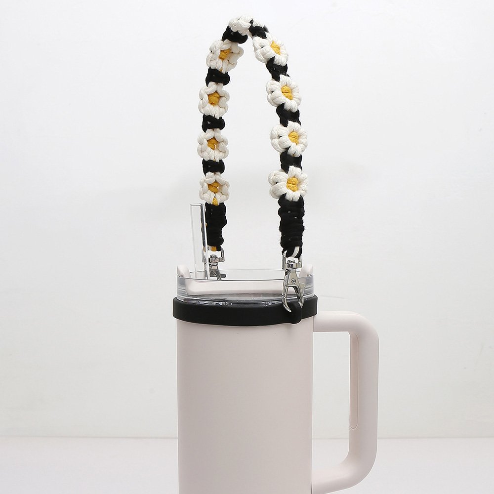 Add a touch of glamour to your outdoor gear with this hand-woven floral water bottle handle. Carry your water bottle in style and comfort. The sturdy woven construction ensures durability, making it perfect for hiking, camping, or everyday use, while the ergonomic design makes it easy to carry. This unique accessory will not only enhance the look of your water bottle, but also add practicality to your outdoor adventures. Upgrade your gear with this eye-catching, functional handle today!
