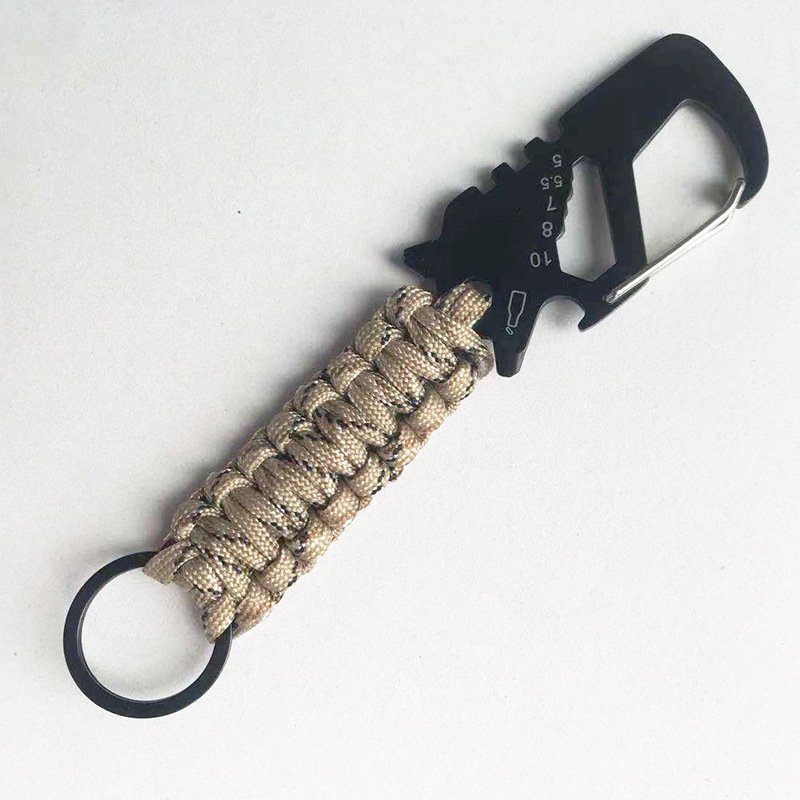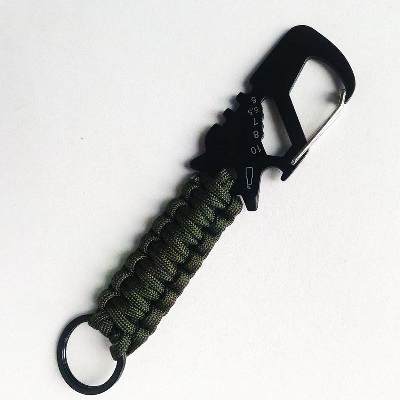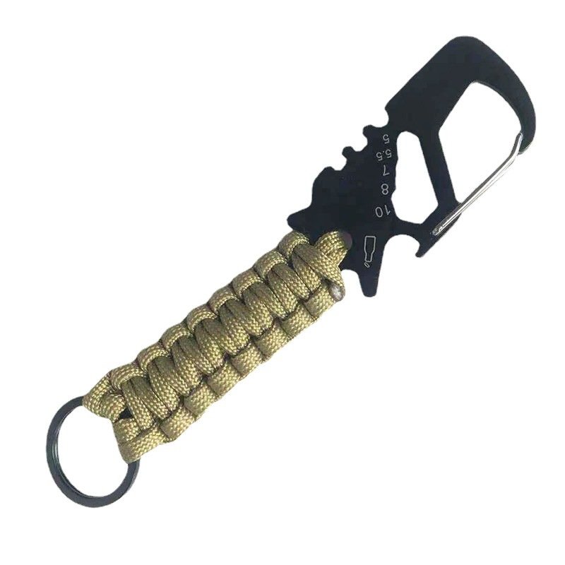 This paracord carabiner keychain combines practicality with style, featuring a built-in bottle opener and a durable braided paracord handle. Available in a range of colors including olive, tan, grey, and black, this keychain is perfect for outdoor enthusiasts and everyday carry. The sturdy carabiner clip ensures easy attachment to bags, keys, or gear, while the integrated bottle opener makes it a must-have accessory for camping, hiking, or casual outings. With its versatile design and rugged durability, this keychain is an essential tool for any adventurer.