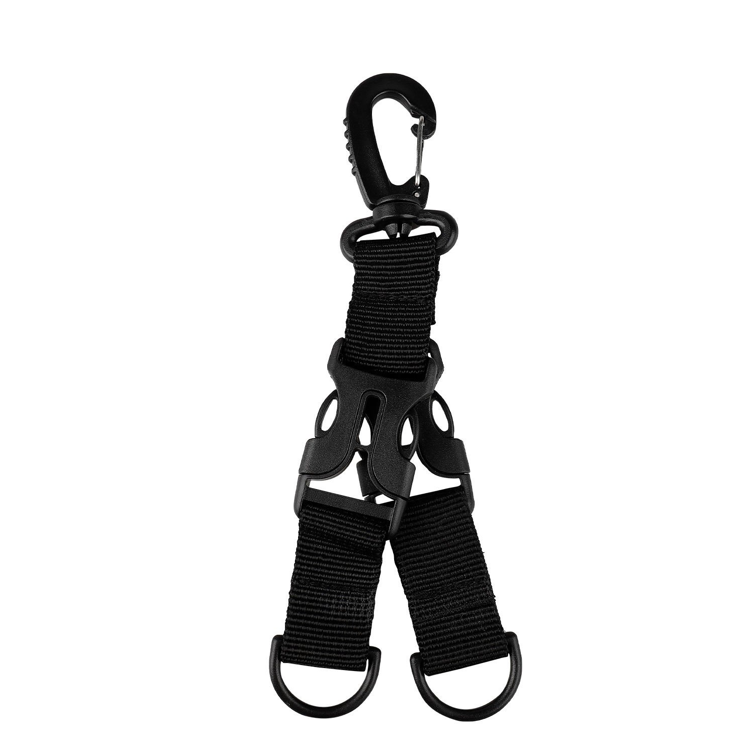 Materials: Nylon webbing+butterfly buckle+universal hanging buckle+plastic steel D-ring