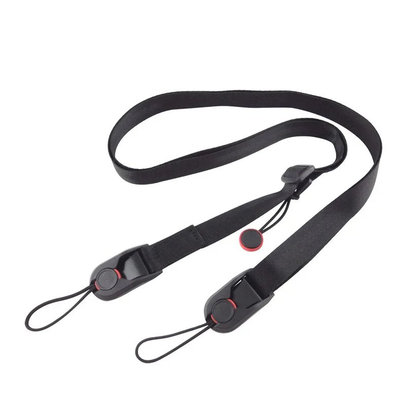 A camera quick-release buckle strap is a highly functional accessory designed to provide photographers with both convenience and security when using their cameras. The primary function of this strap is to allow for fast and easy attachment and detachment of the camera, making it ideal for photographers who need to switch between shooting and other tasks quickly. The quick-release buckle mechanism enables the user to remove the camera from the strap with a simple press or pull, without needing to undo knots or complicated fastenings. This feature is especially beneficial in dynamic shooting environments, such as during action shots or when switching between different camera setups. The strap itself is typically made from durable materials like nylon, leather, or neoprene, providing comfort and support while ensuring the camera stays securely attached when in use. Additionally, the adjustable length of the strap allows photographers to wear it over the shoulder, neck, or across the body, offering flexibility in how they carry their gear. The quick-release buckle also provides peace of mind, as it ensures that the camera can be securely attached to the strap at all times but easily detached when needed. This is particularly useful in situations where the camera needs to be quickly mounted on a tripod, handheld gimbal, or other accessories without the hassle of removing the entire strap. Overall, a camera quick-release buckle strap combines safety, convenience, and efficiency, making it an essential tool for photographers who need both quick access to their equipment and a secure, comfortable carrying option.