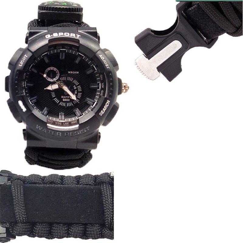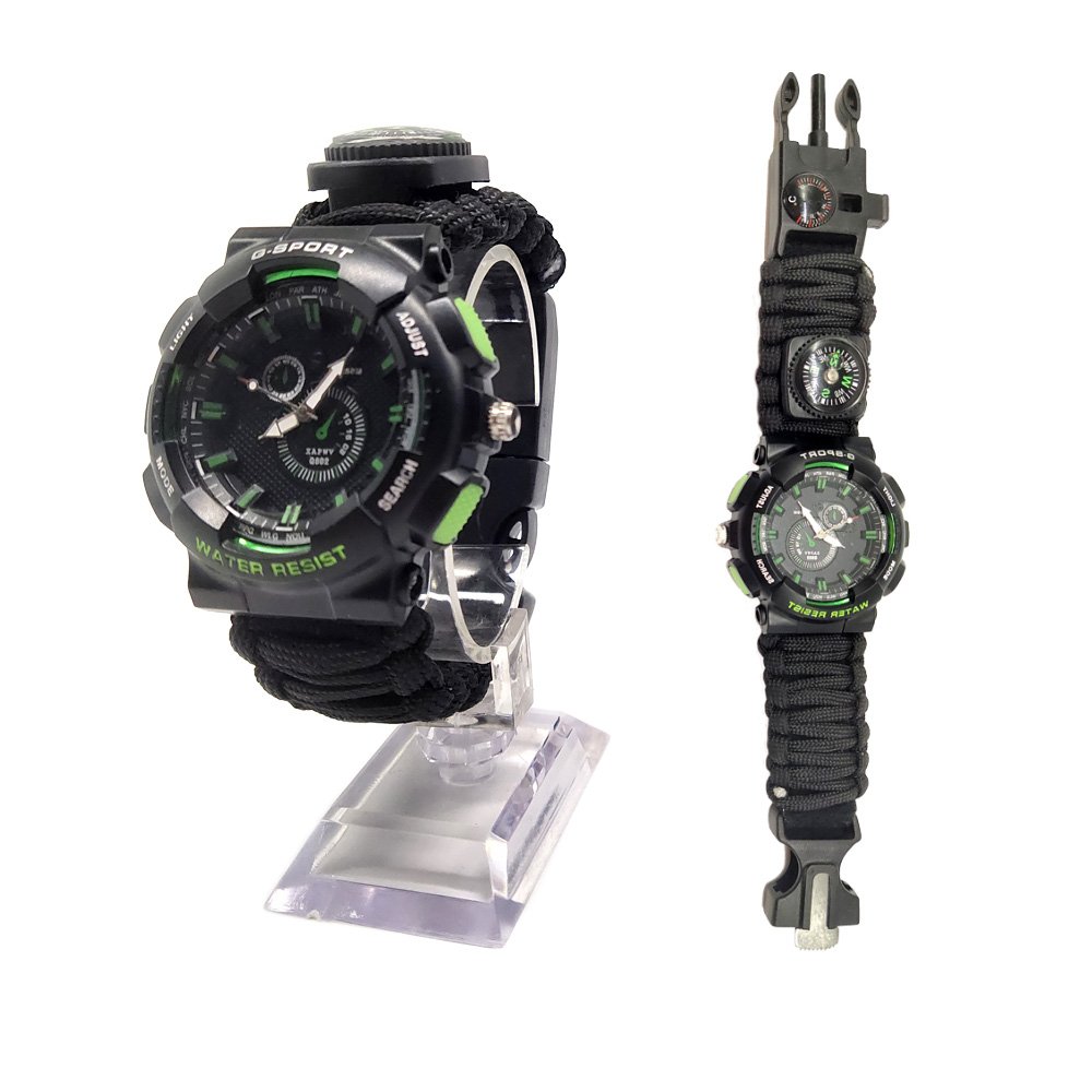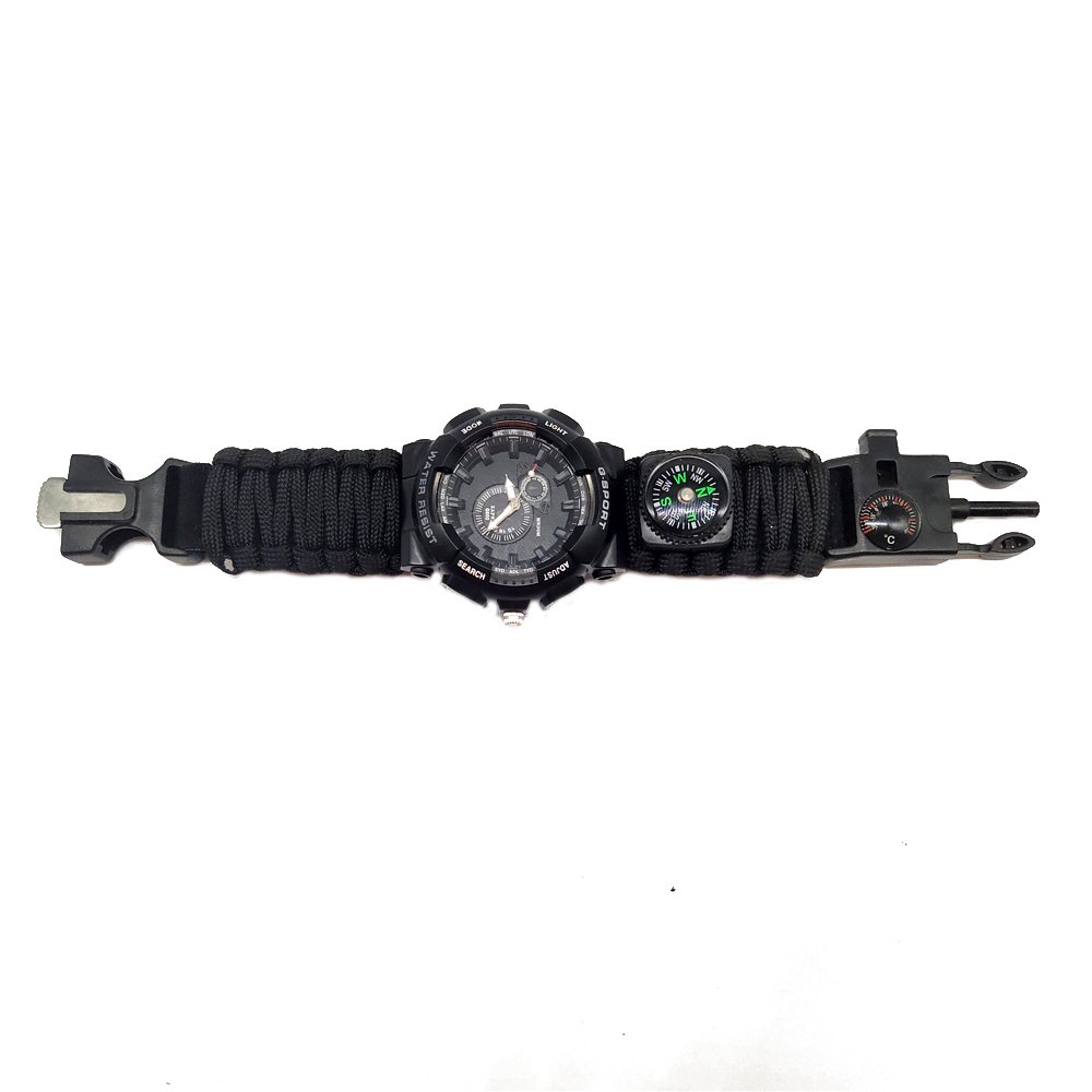 The Multifunctional Outdoor Equipment Emergency Survival Bracelet Watch is a versatile and essential companion for adventurers and outdoor enthusiasts. Combining the practicality of a bracelet with the functionality of a watch, this innovative two-in-one design ensures you have access to multiple survival tools in one compact device, making it incredibly convenient for outdoor activities. The bracelet features a built-in high-decibel whistle that can be used to signal for help or alert others in an emergency, ensuring you can attract attention when needed. Additionally, it is equipped with a fire starter, allowing you to quickly ignite a fire for warmth or cooking in the wilderness, a critical tool for survival in remote environments. The watch also includes a multifunctional scraper, ideal for cutting, scraping, and other small survival tasks. This increases the versatility of your gear and helps solve everyday challenges when you’re off the grid. For navigation, the built-in compass provides accurate directional guidance, helping you stay on track and avoid getting lost while exploring unknown terrains. Made from high-strength materials, both the bracelet and the watch are designed to withstand harsh conditions, offering long-term durability and reliability. It also features waterproof capabilities, ensuring it will continue to function in humid or rainy environments, making it a great choice for a variety of outdoor conditions. The luminous display allows you to easily read the time even in the dark, which is especially useful for night-time activities or emergencies. This survival bracelet watch is perfect for field exploration, camping, hiking, and tactical training, offering all the necessary tools to improve safety, convenience, and survival skills in challenging environments. Whether you’re facing an emergency or simply enjoying outdoor recreation, this multifunctional tool ensures you’re always prepared.