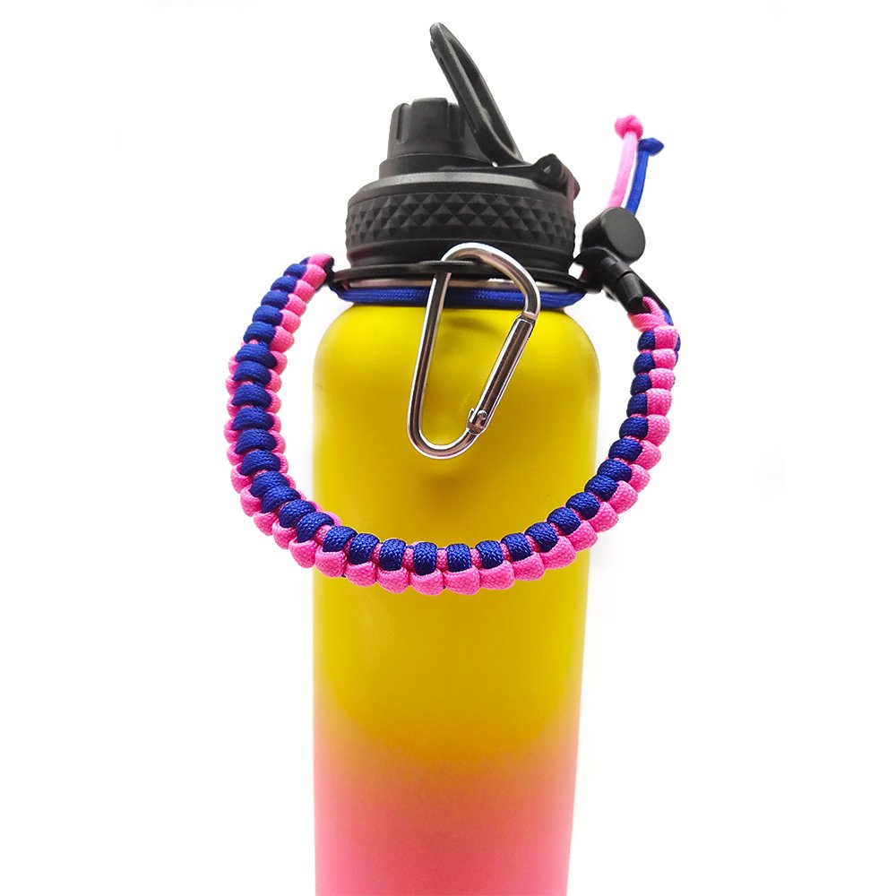 This outdoor camping high-strength woven water bottle carrying strap is specifically designed for outdoor adventurers and cycling enthusiasts, meeting the needs of various activities. It combines high-strength paracord weaving technology, an integrated compass, and a convenient carrying design, providing maximum convenience and safety. First, the carrying strap is crafted with high-quality paracord, offering exceptional durability and tensile strength, ensuring stability even in harsh weather conditions. Paracord not only provides a comfortable grip but also enhances the firmness of the handle, making it a reliable companion for outdoor activities. Its design is compatible with most water bottles, including Hydro Flask bottles, offering greater versatility and practicality. Additionally, the built-in compass function provides accurate directional guidance during hiking, cycling, and other outdoor activities, preventing you from getting lost and ensuring a smoother, safer adventure. The portable design of this water bottle carrying strap makes it suitable not only for camping and cycling but also for everyday use. You can easily install or remove it and attach it to your backpack or bicycle for easy carrying. Whether it’s a long hiking trip or a short bike ride, this handle provides a stable grip and convenient portability. Overall, this outdoor camping high-strength woven water bottle carrying strap perfectly combines the durability of paracord, the practicality of the compass, and the portability of the design, making it an ideal choice for your outdoor adventures. Whether it’s for an adventure trip or everyday use, this water bottle handle will add more convenience and safety to your outdoor activities.