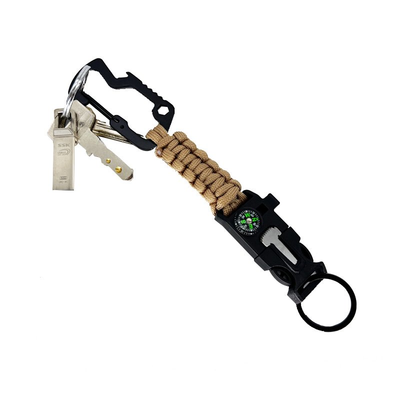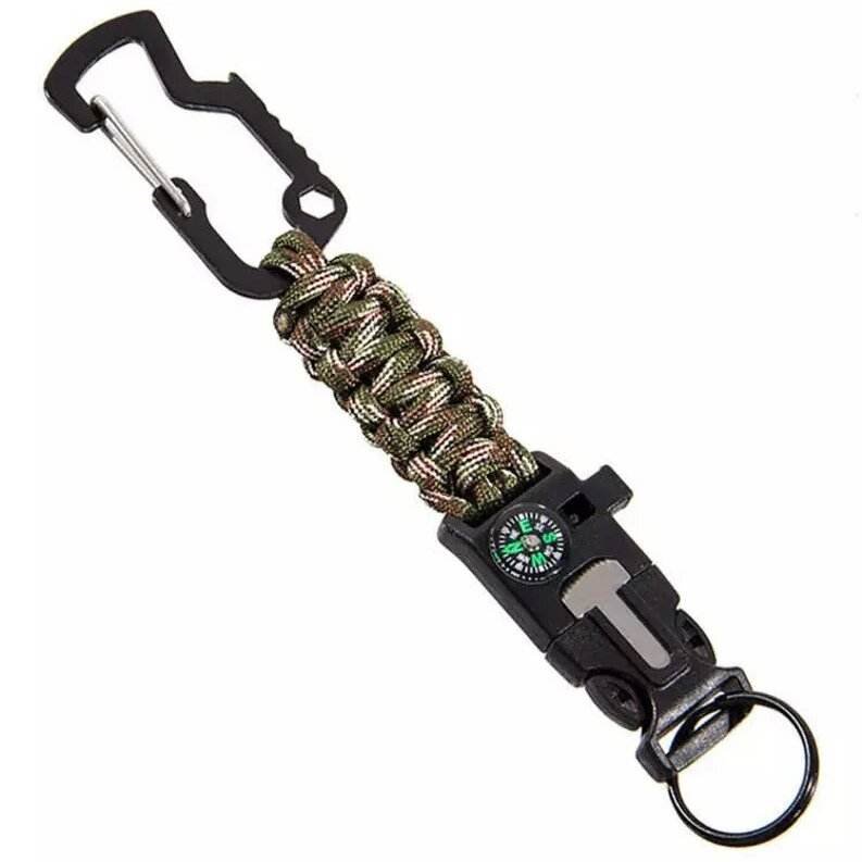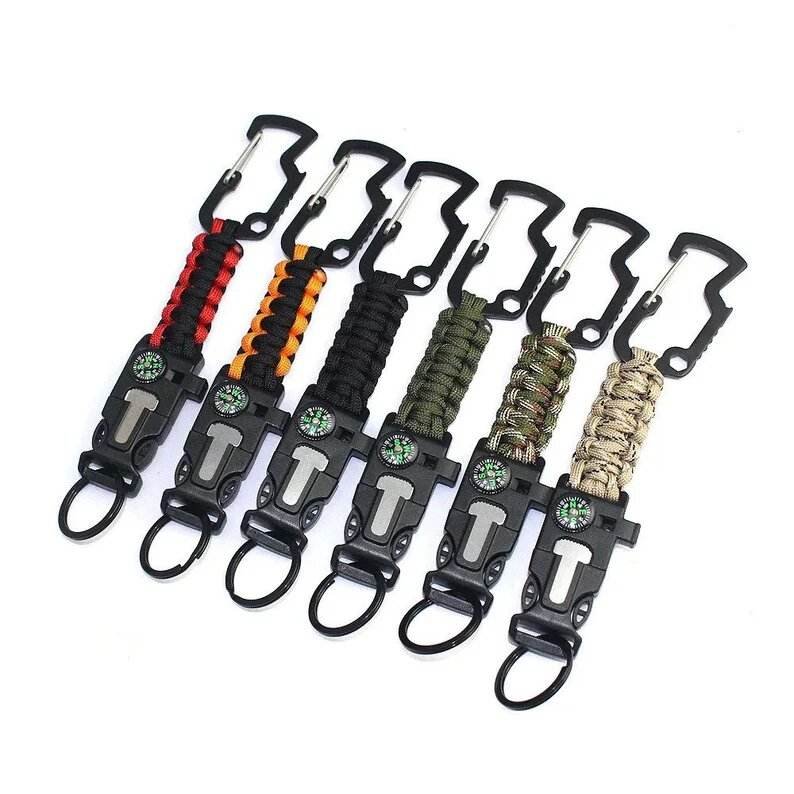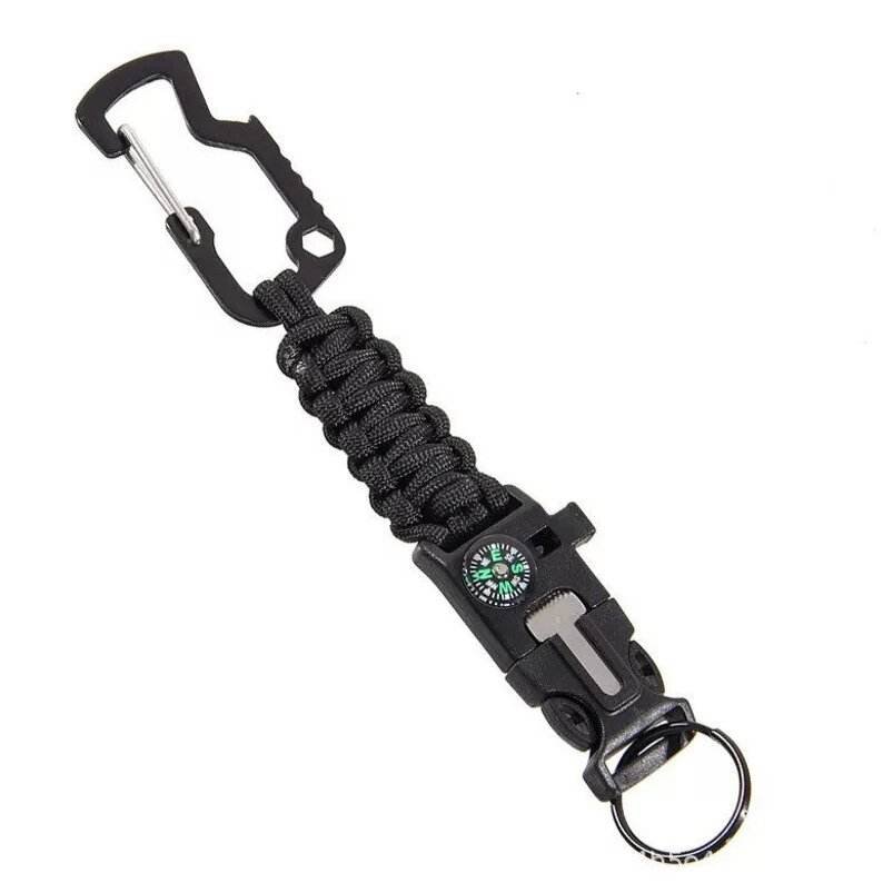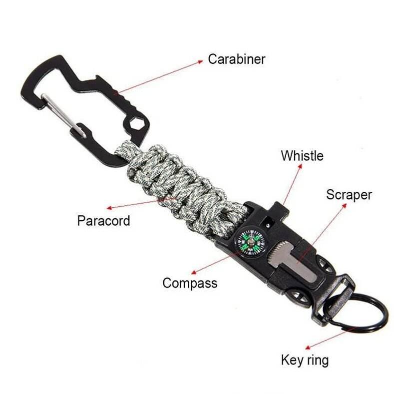 Outdoor Camping Survival First Aid Eagle Beak Button Whistle Compass Flint Keychain