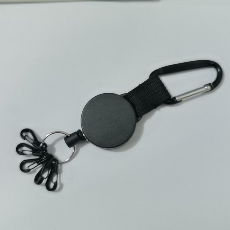 Retractable Plastic Outdoor Anti Theft Pull Key Ring Card Holder Reel Belt Clip Carabiner With Metal Swivel Hook Keychain